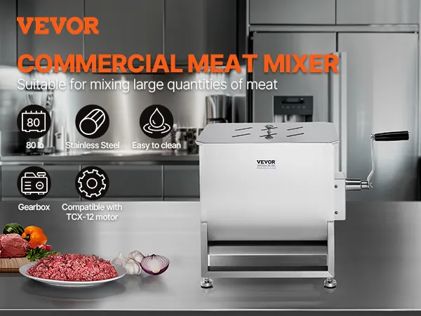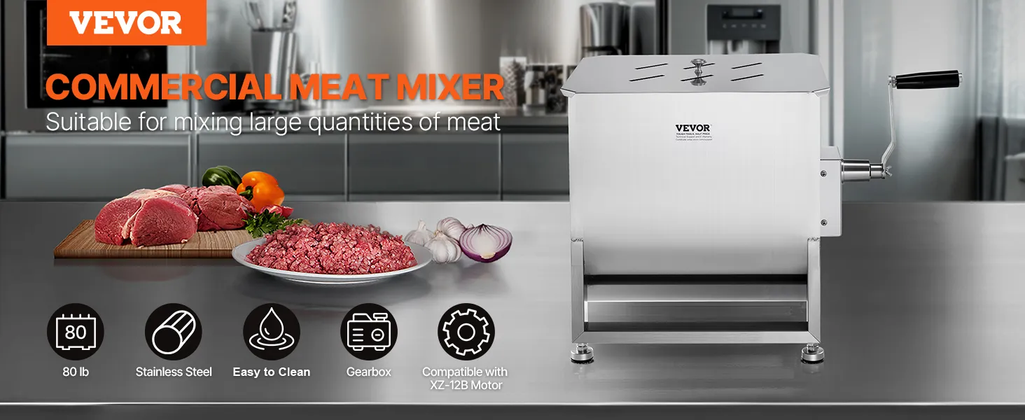 Girkassestruktur: Denne kjøttmikseren har en girkassedesign som gjør betjeningen enklere. Den er kompatibel med VEVOR-drivmotorene XZ-12B, noe som gir håndfri betjening, slik at én person enkelt kan håndtere oppgaven.