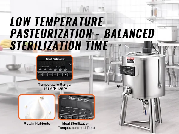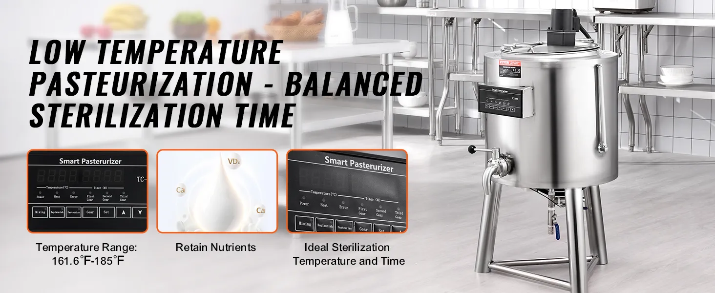Pasteurization/Fermentation: The milk pasteurizer is compatible with a wide range of milk types—including cow, goat, sheep, camel, and buffalo—as well as popular plant-based alternatives like almond, coconut, soy, and wheat. It is also ideal for processing juices and other liquid foods. Effortlessly create homemade yogurt, sour cream, cheese, and a variety of healthful drinks, catering to your quality lifestyle and creative pursuits.