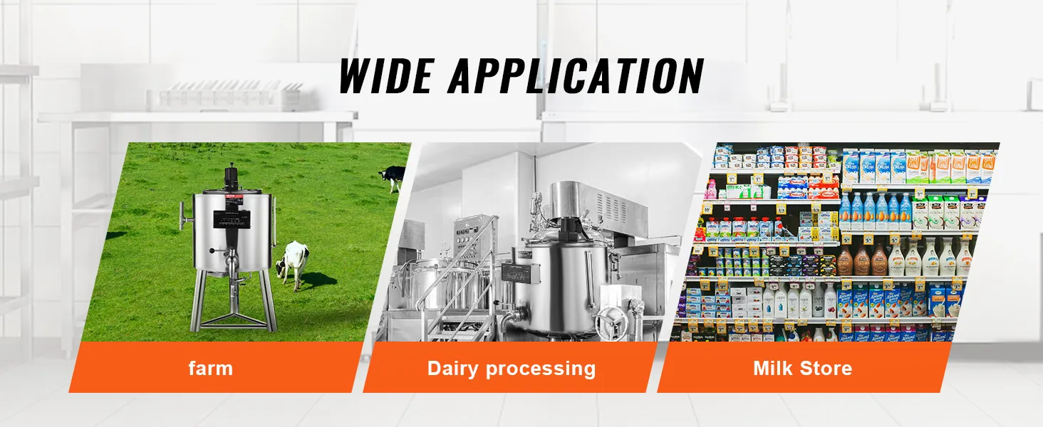 Our commercial milk pasteurization machine is widely used in milk bars, dairies, restaurants, ice cream shops, and farms, with potential extensions into pharmaceuticals and cosmetics.