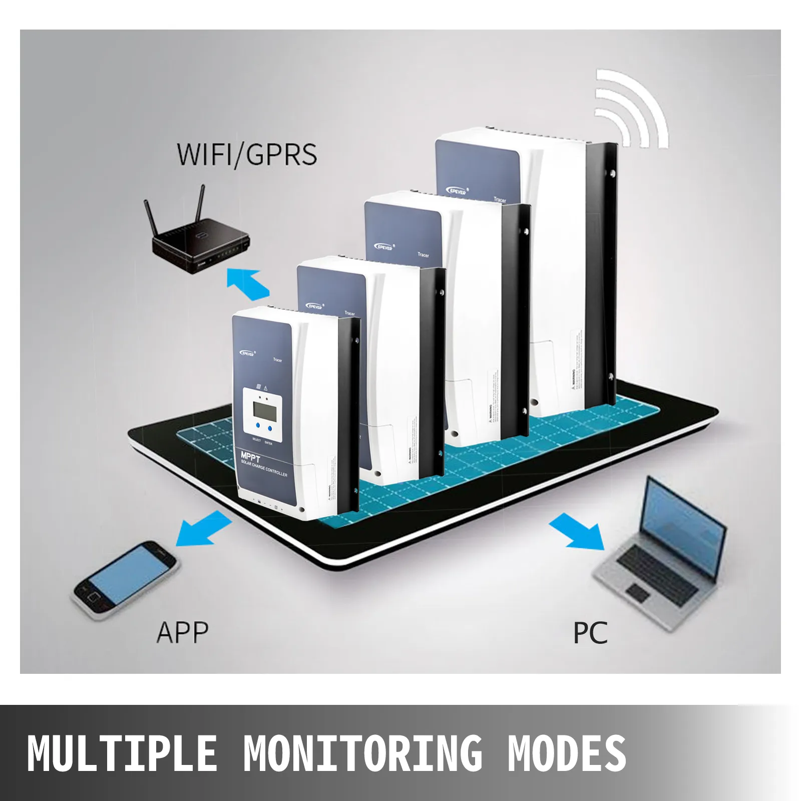 Our brand-new MPPT charge controller series can offer excellent performance with its high efficiency ≥99.5%, conversion≥98.6%, so it is perfect for solar off-grid system of telecommunication base station, street lighting system, field monitoring system, etc.