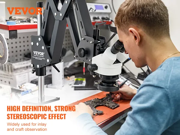 Ο εκτεταμένος σχεδιασμός του στερεοσκοπικού μικροσκοπίου προσαρμόζεται σε διαφορετικά ύψη. Είναι ρυθμιζόμενο σε πολλαπλές γωνίες, ευέλικτα ρυθμιζόμενο και μειώνει την κόπωση του αυχένα και της οσφυϊκής μοίρας από την παρατεταμένη εργασία.