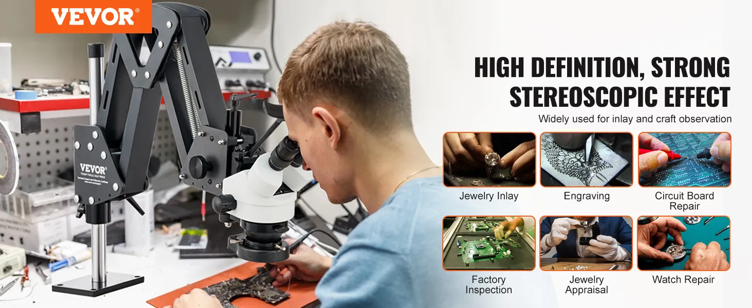 Με συνεχές ζουμ 7X-45X, το μικροσκόπιο κοσμημάτων μας με ελατηριωτό βραχίονα παρέχει καθαρά και στερεοσκοπικά μικροσκοπικά εφέ. Αυτός ο μικροσκοπικός εντοιχισμένος καθρέφτης χρησιμοποιείται ευρέως σε ένθετα κοσμημάτων, χαρακτικές κατασκευές, επισκευές πλακετών τυπωμένων κυκλωμάτων, εργοστασιακή επιθεώρηση, αξιολόγηση κοσμημάτων, επισκευή ρολογιών και πολλά άλλα.