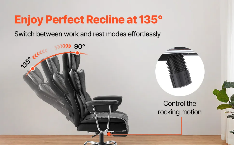 With a height adjustment range of 0-3.15 in / 0-80 mm, this executive desk chair easily adapts to your desk height with just one press of a button. The locking mechanism on the rocking base ensures the chair remains stable, meeting all your different office needs.