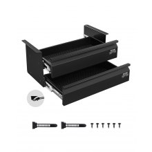 VEVOR 16" Wide Under Desk Drawer Slide Out, Under Desk Mounted Pull-out Drawer Attachment, Hidden Desktop 2 Layer Storage Organizer, Under Table Pencil Drawer for Home Sit Stand Workstation, 18x9x8 in