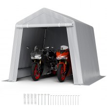 VEVOR Șopron de depozitare pentru exterior, cort portabil de depozitare de 8 x 8 picioare cu ușă rulantă și orificii de ventilație, adăpost impermeabil pentru șopron, cadru rezistent, carport pentru terasă, garaj, mașină de tuns iarba, bicicletă, gri