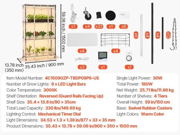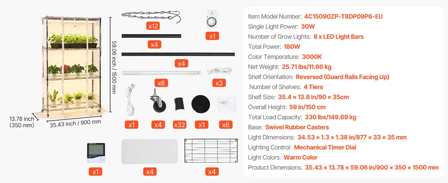 The grow light shelf Includes all accessories and clear instructions. No tools or complex steps required—set up quickly and enjoy stress-free indoor gardening.