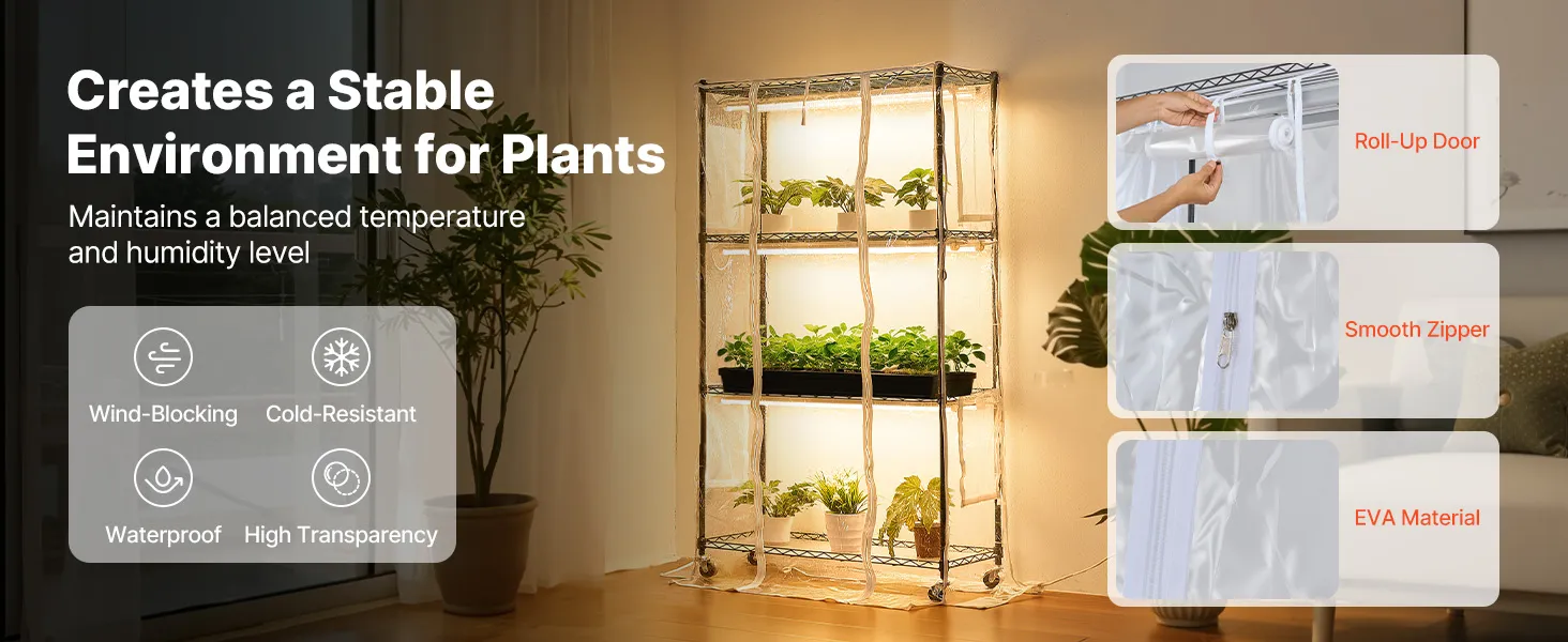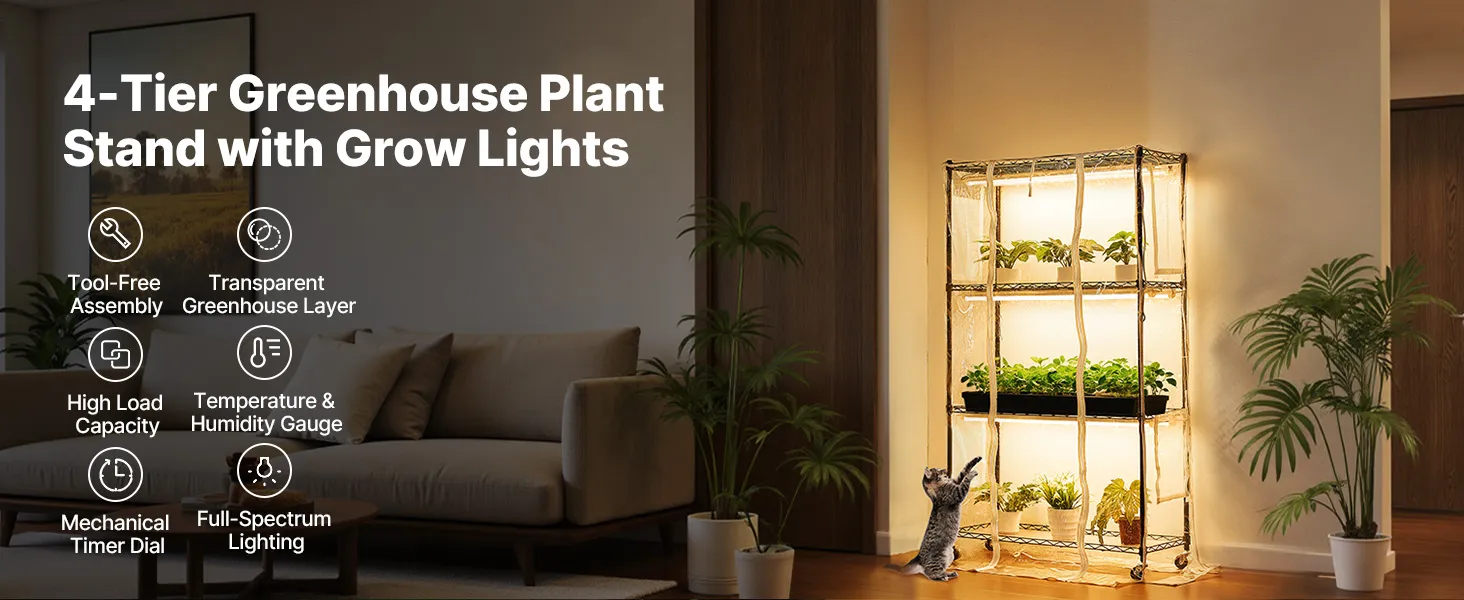 The clear cover and full-spectrum LED grow lights create the ideal balance of temperature and humidity. The plant stand with grow light supports every stage from seedling to harvest, helping you achieve higher success rates.