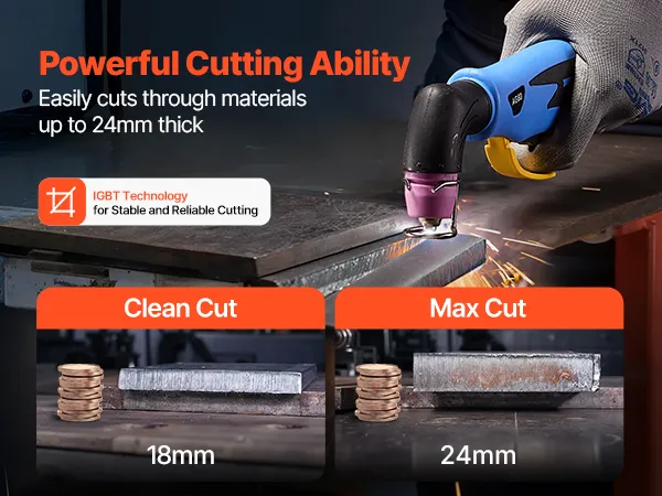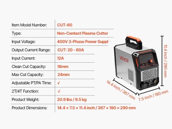 Powerful Cutting: This VEVOR 400V 3-phase plasma cutter delivers a maximum output current of 60A with powerful cutting ability. It supports clean cuts up to 18mm, with a maximum cutting thickness of 24mm