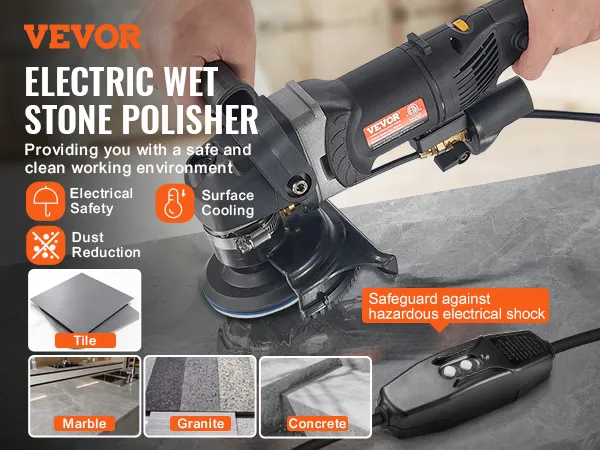 Udstyret med en kraftfuld 800 W motor og 6 hastigheder fra 700 til 3000 o/min. håndterer denne vådsliber af granit ubesværet en række overflader, fra marmor og granit til beton og fliser. Dens alsidige hastighedsindstillinger sikrer et fejlfrit resultat hver gang.