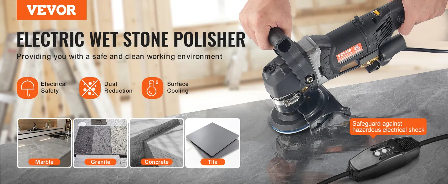 6 hastigheder til præcis polering: VEVOR vådstenspoleringsmaskine tilbyder 6 variable hastigheder fra 700 til 3000 o/min, hvilket gør den alsidig til forskellige overflader. Tilpas nemt hastigheden til at arbejde med materialer som marmor, granit, beton og fliser for en fejlfri finish.