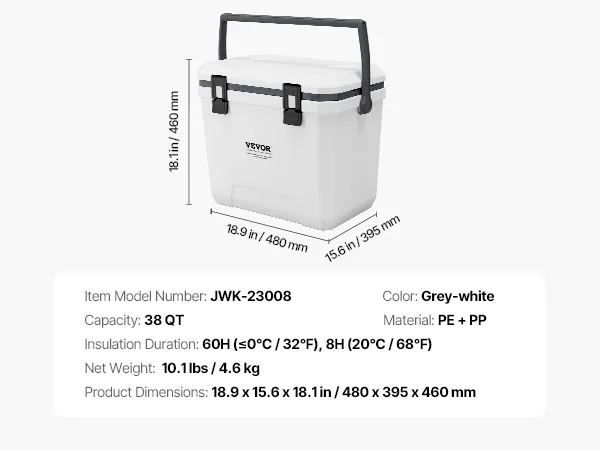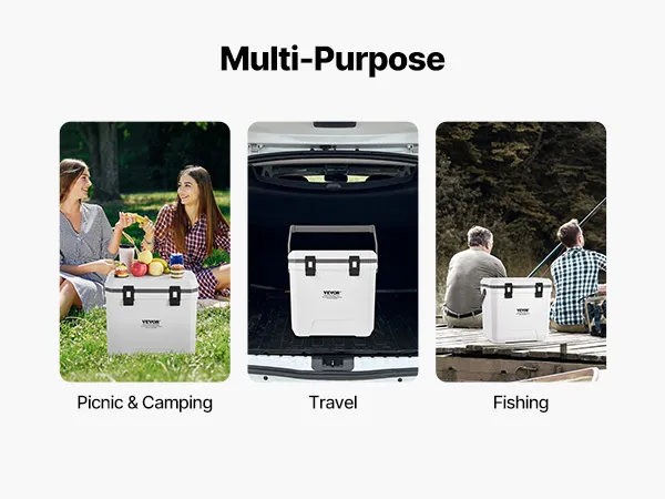 Víceúčelový: Tento chladič je ideální pro různé outdoorové aktivity, jako jsou pikniky, kempování, cestování a rybaření. Udrží vaše jídlo a nápoje čerstvé a chladné po dlouhou dobu.