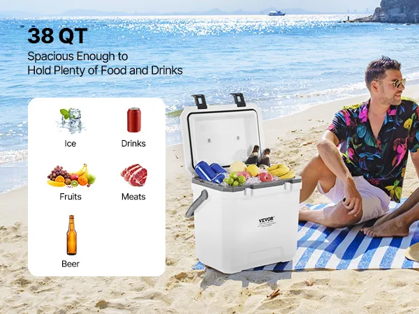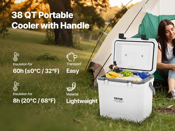 Přenosná chladicí taška VEVOR, tvrdá chladicí taška 38 QT s funkcí zadržování ledu, odolnými rukojeťmi a držákem na kelímky, lehká přenosná chladicí taška s izolací z pevného materiálu, vhodná pro rodinné pikniky a dlouhé výlety
