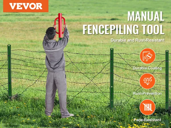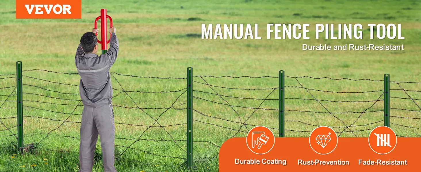 Všestranný beranidlo: Tento beranidlo je navrženo s vnitřním průměrem 4,11 palce a hodí se pro různé sloupky a kolíky. Vyrobeno z odolné uhlíkové oceli s nerezovým povlakem, zajišťuje dlouhotrvající výkon. Ergonomická rukojeť zvyšuje pohodlí a efektivitu, díky čemuž je ideální pro různé aplikace od oplocení až po stavbu.