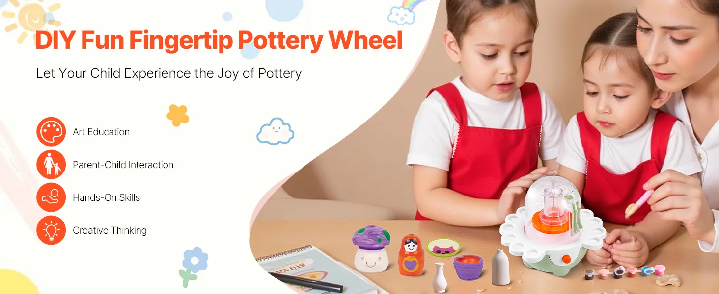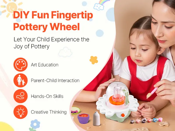 This clay wheel helps kids express creativity, boost imagination, and build hands-on skills. Ideal for home craft time or classroom lessons, it brings joy to every step of the pottery-making journey and fosters meaningful parent-child interaction.