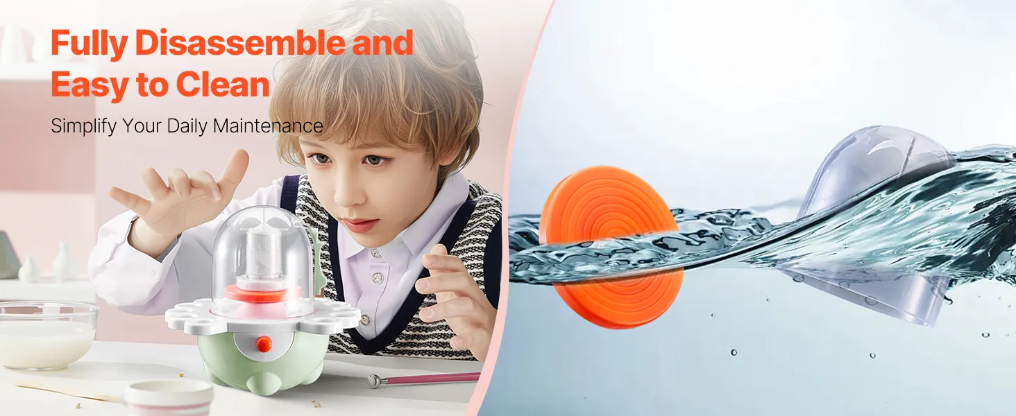 The detachable turntable and splash guard keep the mess to a minimum. They help block clay, making daily cleanup fast and easy—so kids can focus more on fun and less on tidying up.