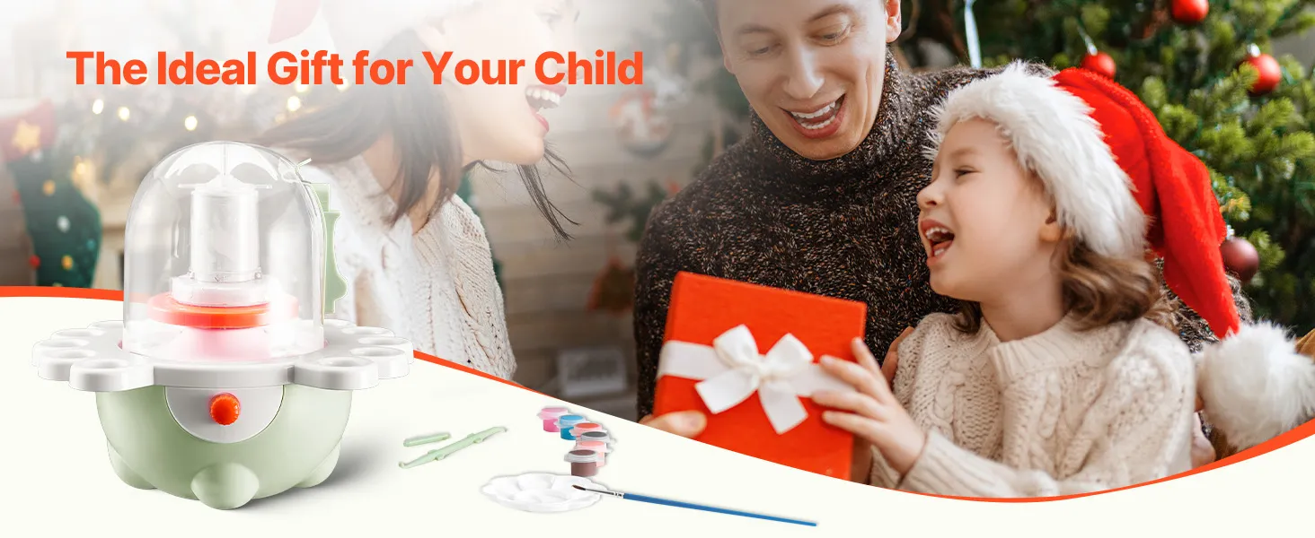 Let kids learn and create through play! This kids' pottery wheel kit provides a fun hands-on experience and makes a wonderful gift that encourages artistic growth.