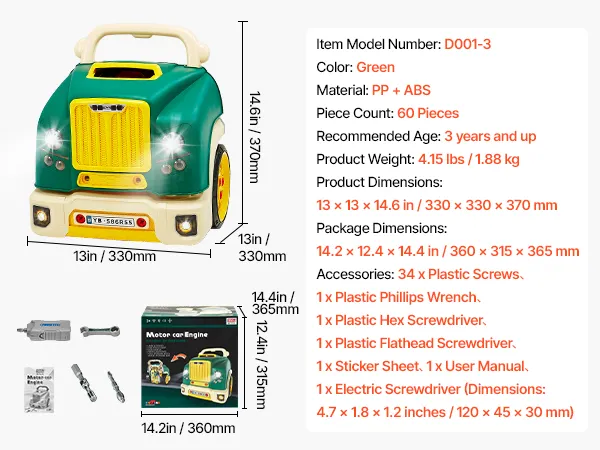 The Gift for Little Mechanics: Made from durable ABS+PP, this engine repair toy is built to last. With smooth edges and a fun STEM design, it’s the great gift for kids 3 and up. Packed in a colorful box, it’s ideal for birthdays or holidays! (Requires 3 AA batteries, not included)