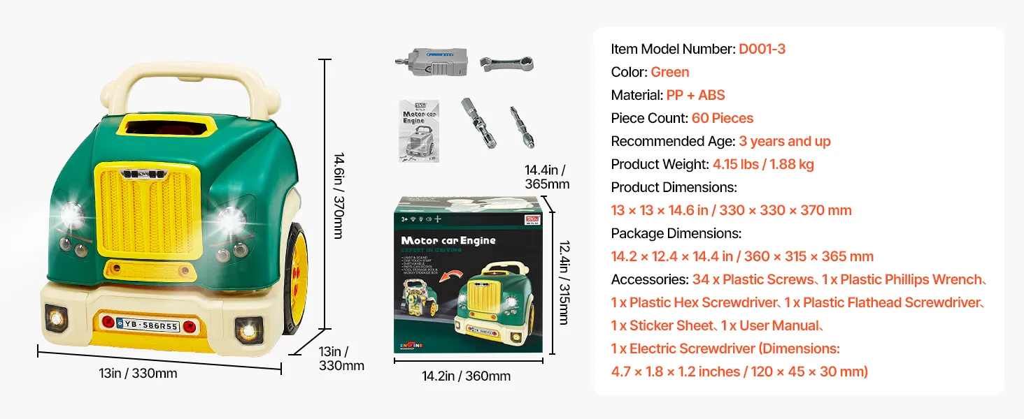 Made from secure ABS+PP materials, this engine repair toy is smooth, sturdy, and ready for hours of fun. Ideal for birthdays or holidays, it blends learning with play and will have your little one smiling all day long!