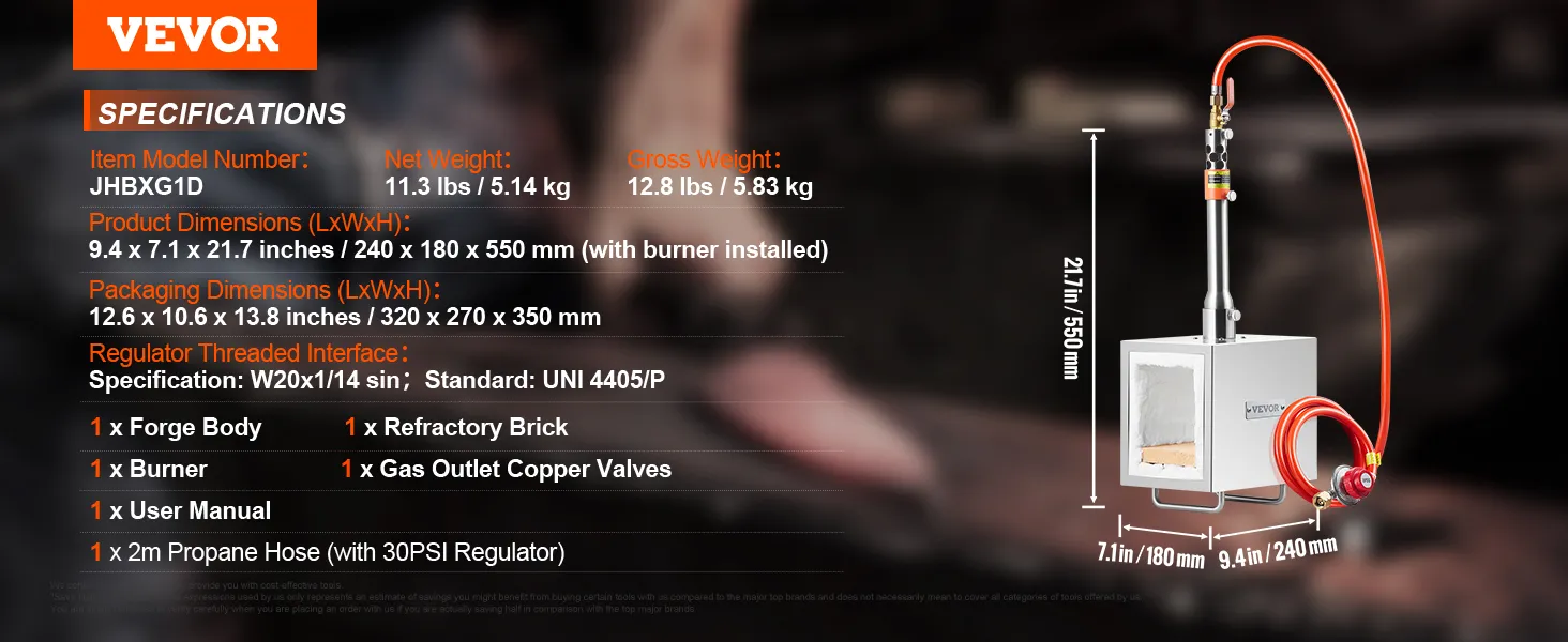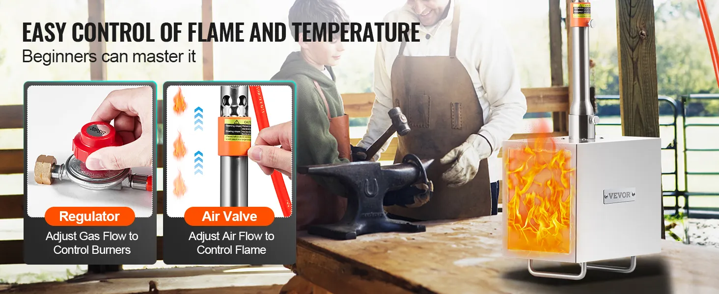 Upgraded Craftsmanship & Durability: The high-quality craftsmanship enhances safety during production. Made from corrosion-resistant 201 stainless steel, this propane forge withstands high-temperature, flue gas, and chemical corrosion, ensuring long-lasting durability.