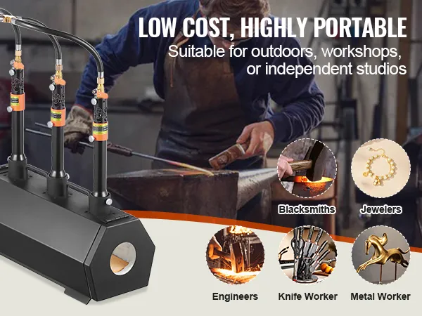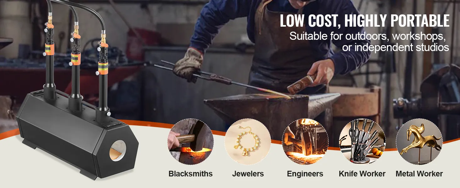 Přenosná a všestranná: Díky modulární konstrukci je tato kovářská plynová vyhřívací pece vysoce přenosná a snadno se přemisťuje. Ať už jste amatér, kovář, klenotník, inženýr, obuvník nebo kovář, můžete ji použít v malé dílně, ateliéru nebo dokonce na otevřeném pozemku k výrobě vlastních výtvorů.