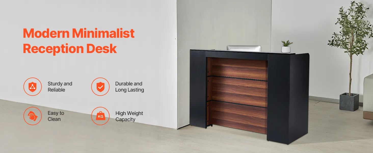 Robustná a spoľahlivá konštrukcia: Tento recepčný pult je vyrobený z drevovláknitej dosky s vysokou hustotou (MDF). Pracovná doska a rám sú konštrukčne stabilné s vysokou nosnosťou, čo zaisťuje odolnosť a dlhú životnosť.