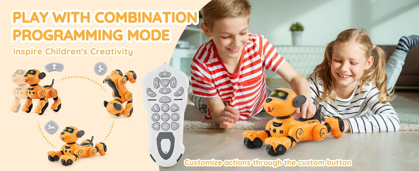 Programmable Fun: With the remote, you can program the remote control robot dog toy to dance, move forward, or do flips. It's like having a real puppy to interact with and enjoy.