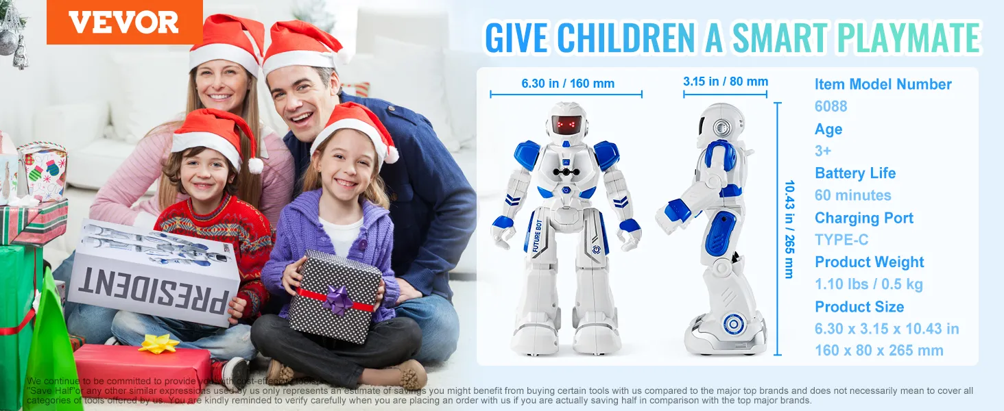 VEVOR RC Robot Toys for Kids, Gesture Sensing Programmable Remote Control Smart Robot, Interactive Walking Singing Dancing Robot for Age 3 4 5 6 7 8 10 12 Year Old Boys Girls Birthday Gift Present