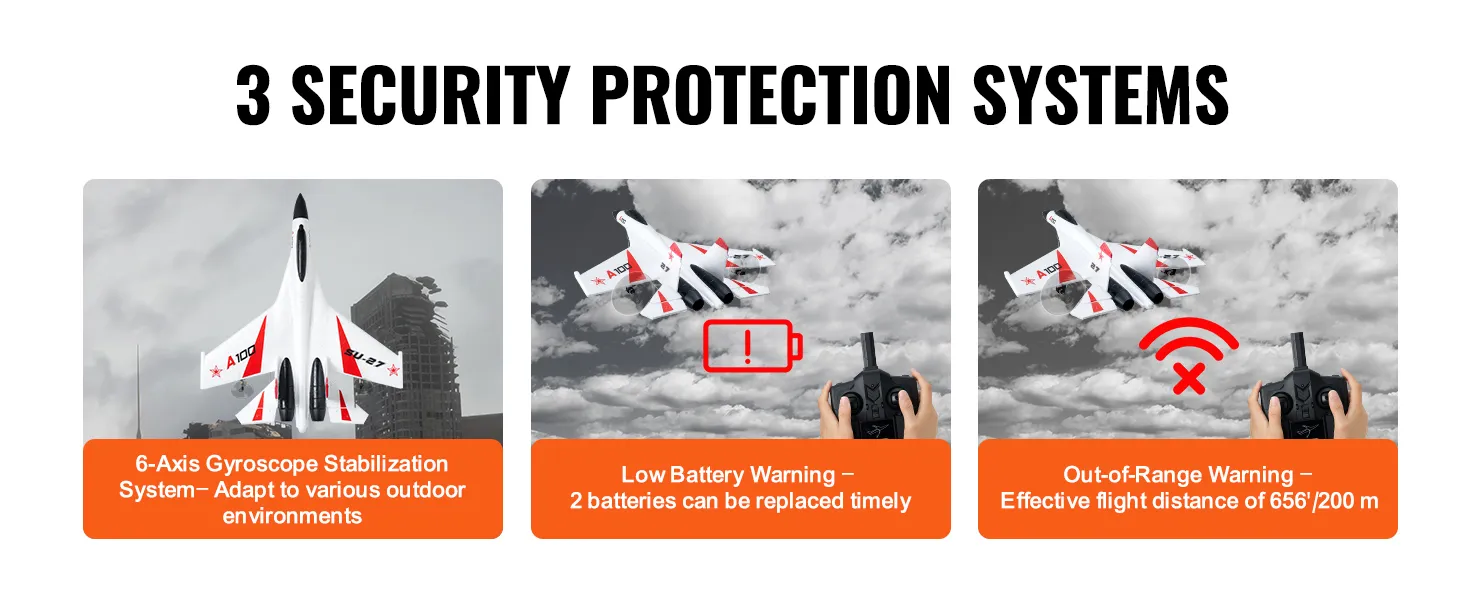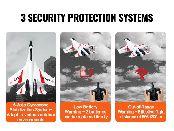 Udstyret med en 6-akset gyrostabilisator sikrer dette fjernstyrede fly stabil flyvning under stunts. Det advarer dig om lavt batteri og forhold uden for rækkevidde, hvilket sikrer sikre og kontrollerede flyvninger hver gang.