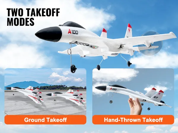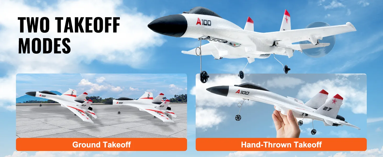 Mestrer nemt starter. Tag blot fjernbetjeningen med én hånd, giv gas, og affyr fjernbetjeningsflyet lige frem. Eller placer det på en glat overflade, giv gas for at få en 10 meter lang glidebane, og se det svæve.