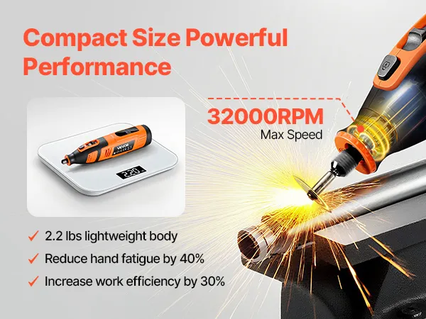 Boasting a maximum speed of 32000 RPM, this power rotary tool completes tasks quickly and effectively. Its lightweight design, combined with an ergonomic grip, ensures comfort during prolonged use, enhancing precision and efficiency.