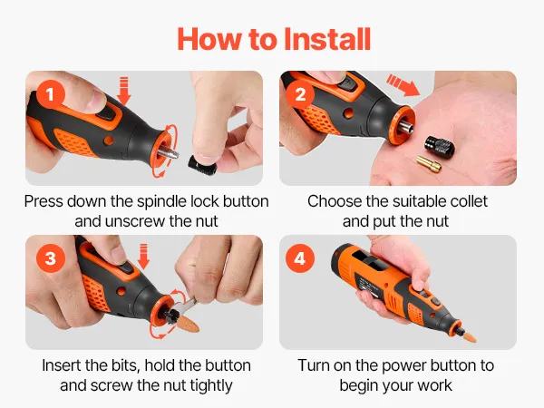 Multi-Purpose Kit: Comes with 2.3mm (3/32") and 3.2mm (1/8") collets, plus a spindle lock button for fast accessory changes. Easily change different bits for household repairs, jewelry polishing, craft carving, wood sanding, cutting tasks, and more — one tool for countless applications