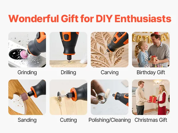 A perfect gift for DIY enthusiasts, this multifunctional DIY rotary tool easily tackles grinding, drilling, carving, sanding, cutting, and polishing/cleaning tasks. Complete all your creative projects effortlessly!