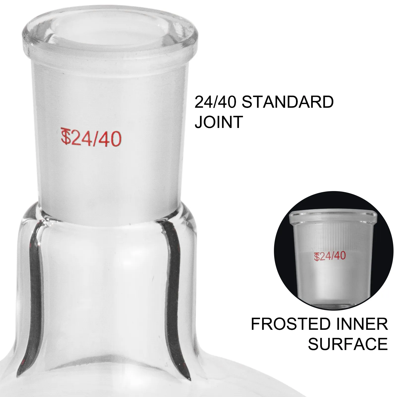The flask is designed with the 24/40 standard taper joint, providing excellent sealing performance for its frosted inner surface.