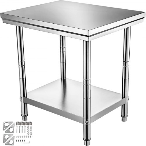 VEVOR 24 x 30 x 36 Inch Stainless Steel Work Table, Commercial Food Prep Worktable Heavy Duty Prep Worktable, Metal Work Table with Adjustable Height for Restaurant, Home and Hotel