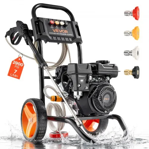 VEVOR Gas Pressure Washer 2900 PSI and Max 7 L/min, Upgrade Aluminum Pump with Spray Gun and Wand, 4 Nozzle Set, Low Profile Power Washer for Cars, Fences, Driveways, Homes, Patios, Furniture