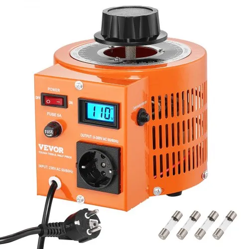 VEVOR 1000VA Auto Variable Voltage Transformer, 3.3 Amp, 230V Input 0-300V Output AC Voltage Regulator, with LCD Display 4 Extra Fuses Thermal Control Switch for Home Industrial Office, CE-Certified