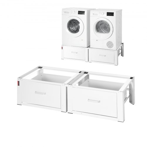 VEVOR Laundry Pedestal, 290 mm Height, Washer and Dryer Pedestals with Drawer, 150 kg Weight Load Capacity, Non-Slip Feet, Heavy-duty Steel Washing Machine Stand Universal Fit, White, 2 Pack