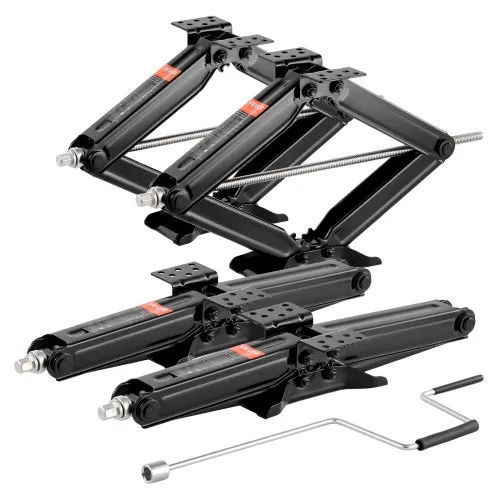 VEVOR 6500 lbs RV Scissor Jacks, 4-23.4 in RV Stabilizer Leveling Scissor Jacks, Set of 2, Heavy Duty Stabilizer Jack with Crank Handle, Socket and Bubble Levels, Not Easily Bent or Deformed
