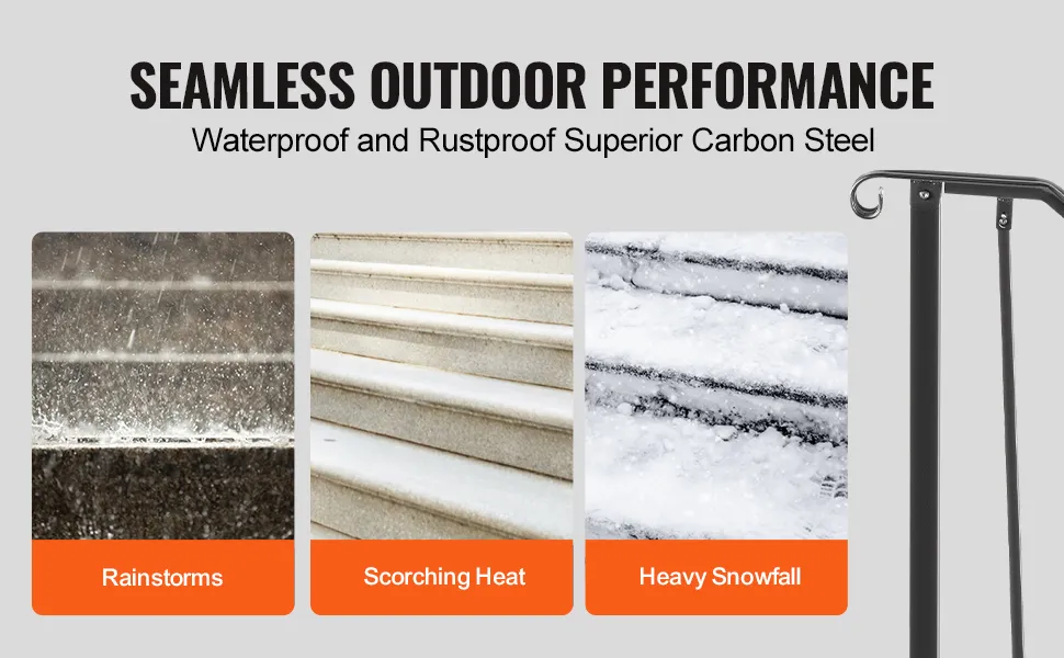 The VEVOR handrails are made from high-quality wrought iron. This material ensures that the handrails remain strong and durable. They are designed to last long, even when exposed to the elements. The robust construction means that your handrails can endure heavy use without showing wear and tear. Additionally, the forged iron material adds elegance to your outdoor space.