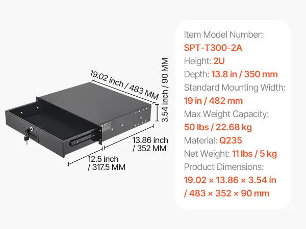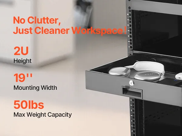 2U Rack Drawer: Fit for 19-inch server racks & network cabinets. This rack mount drawer gives you plenty of room to store your gear. Smooth sliding design allows easy access to your equipment