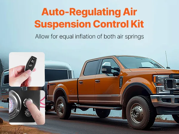 A légrugó-szabályozó készlet kezelése még soha nem volt ilyen egyszerű. Egyszerűen nyomja meg a nyomásmérőn található gombot, vagy használja a mellékelt távirányítót a légnyomás beállításához. Ez a fedélzeti légkompresszor-rendszer könnyed működtetést kínál, akár a járműben ül, akár kint áll.