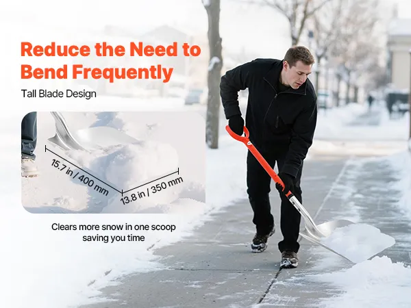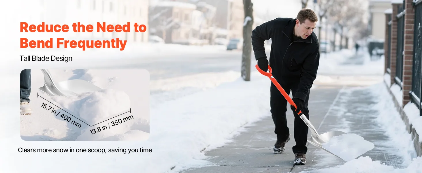 The snow shovel for driveway adopts a sturdy, cold-resistant aluminum alloy head, which is crack-proof. With a 15.7-inch tall blade, it can clear more snow at once to reduce operation frequency. Ideal for winter storms and quick snow clearing, enhancing travel security and snow-clearing efficiency.