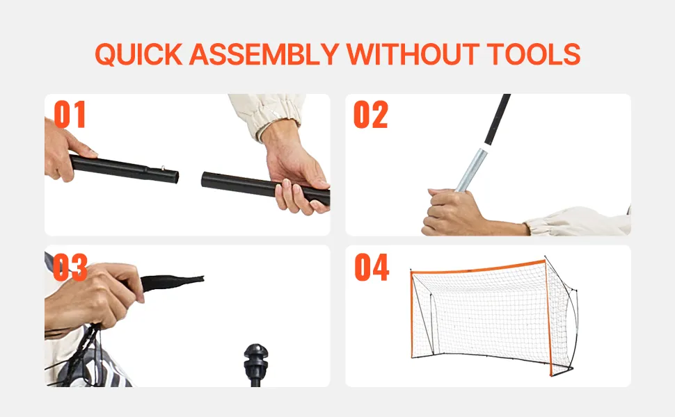 Quick Setup Without Tools: Setting up this training soccer goal is a breeze, thanks to its snap-locking mechanism. You can have your goal ready for action in no time, without the need for any tools or complicated assembly.