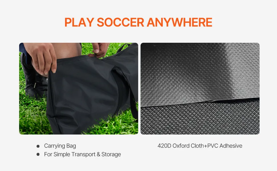 Portable & Convenient: Designed for on-the-go fun, our portable soccer goal comes with a convenient carrying bag made from 420D oxford cloth and PVC adhesive. This bag simplifies transportation and storage, allowing you to take the game wherever you desire effortlessly.