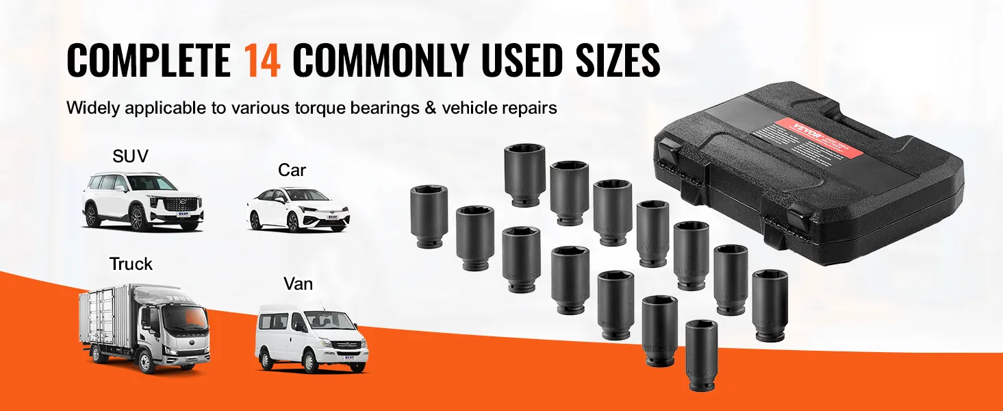 Este conjunto de soquetes de eixo é ideal para manutenção de veículos, incluindo caminhões, carros e SUVs, ajudando você a substituir peças de forma eficiente e reduzir quebras de veículos ou riscos à segurança.