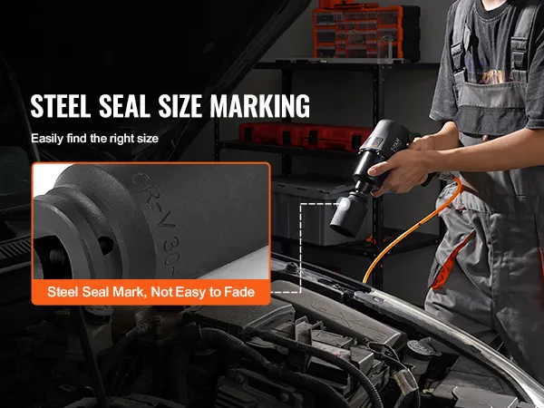 Cada soquete do conjunto de soquetes de porcas de eixo é claramente marcado com seu tamanho para rápida identificação. As marcações produzidas pelo processo de estampagem de aço são resistentes ao desbotamento, ao desgaste e altamente duráveis.
