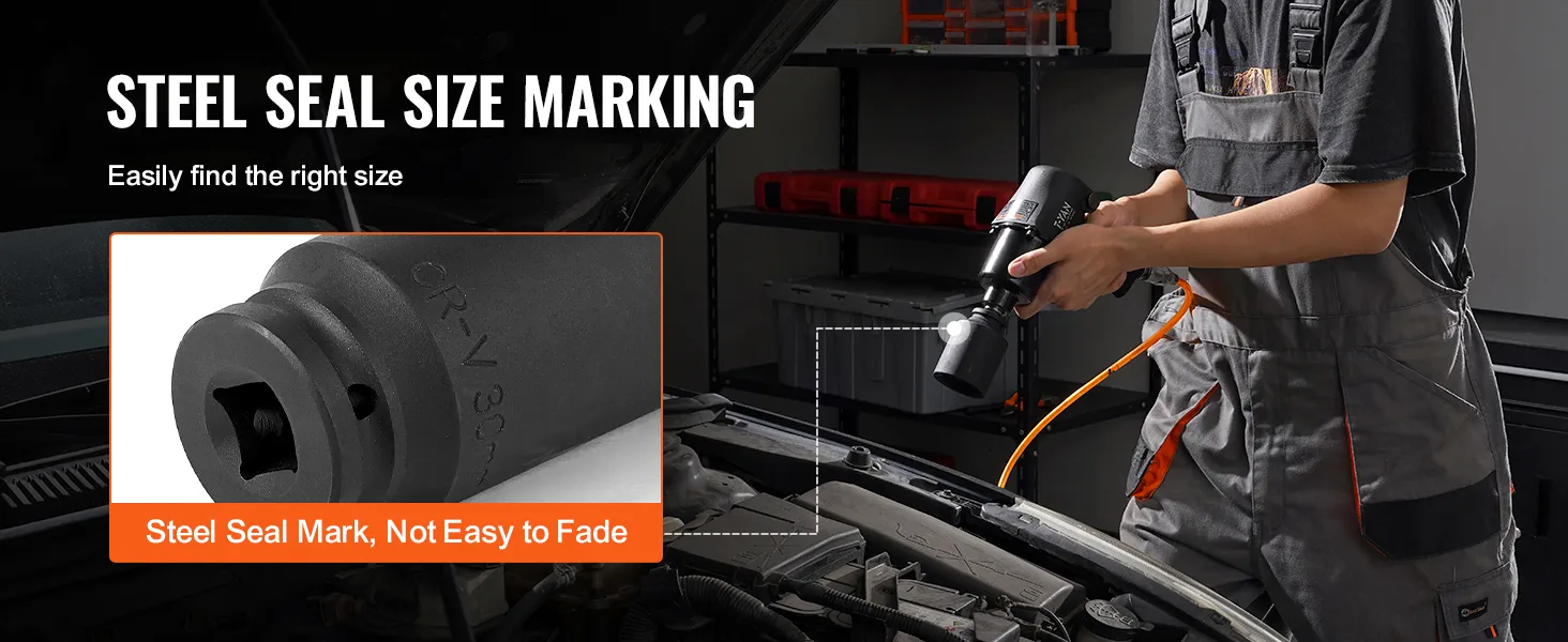 Feito em aço CR-V de alta resistência e resistente à corrosão, o conjunto de soquetes de impacto para porcas de eixo é feito para durar. As marcações de tamanho em alto contraste permitem uma identificação rápida, enquanto o design de 6+12 pontos segura as porcas com segurança para evitar deslizamentos ou danos.
