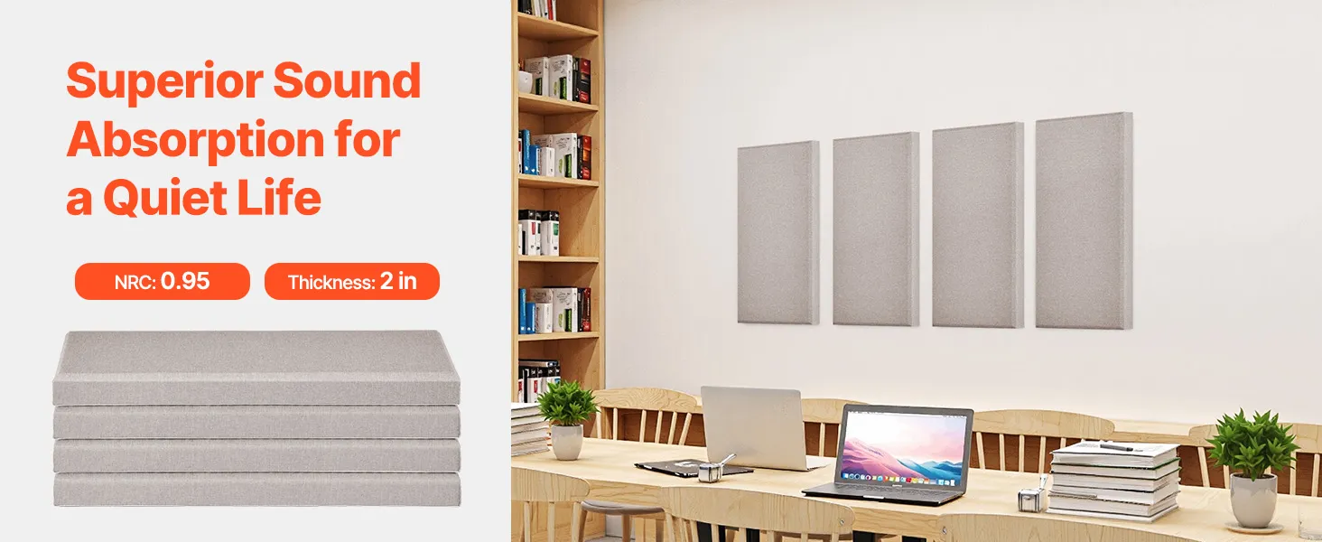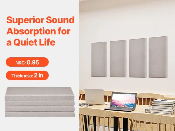 Højeffektiv lydabsorption: De lydisolerede glasfiberpaneler er lavet med 100% hvid glasfiberforing, 5 cm tyk, med en NRC-værdi på op til 0,95, der effektivt absorberer mellem- til højfrekvent støj, reducerer ekko og efterklang og skaber et roligt og behageligt miljø for dig.
