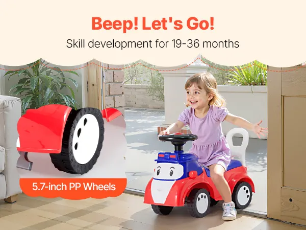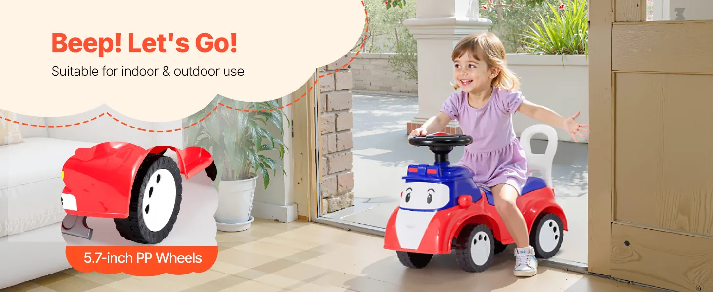 VEVOR Ride On Toddler Push Car, Push Car for Toddler 19 to 36 Months, Kids Ride On Toy with Music & Under-seat Storage, 25 kg Load Capacity, Foot-to-Floor Walker for Toddlers Boys Girls, Red