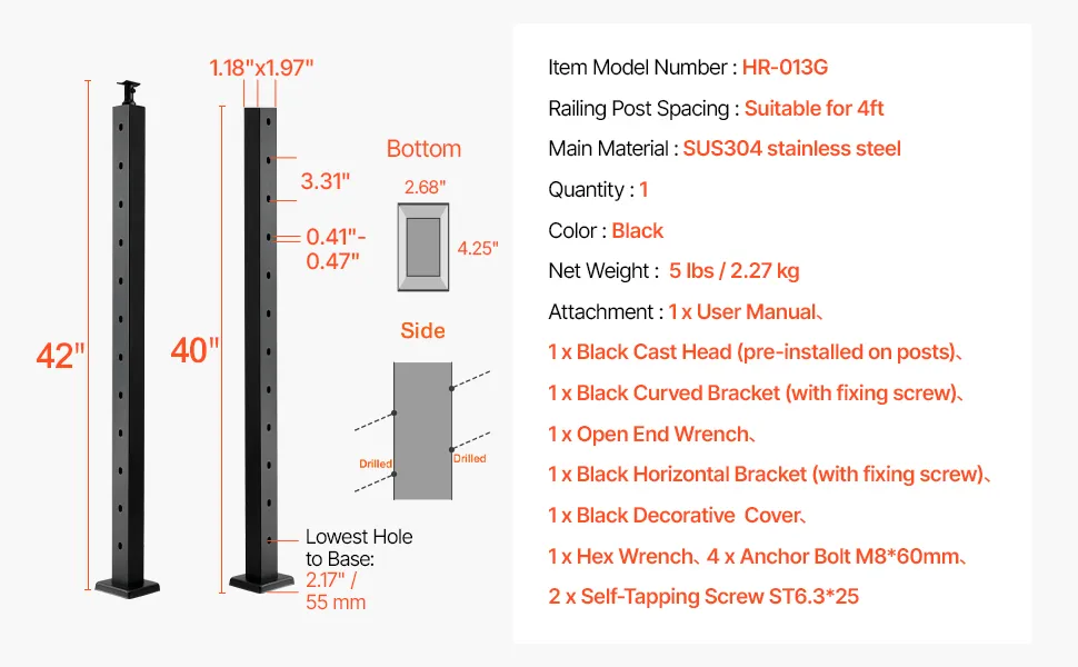 Discover the new standard in railing posts! Made from durable SUS304 stainless steel, our cable railing post offers both strength and style. Easy to install with pre-drilled holes and included accessories, it's ideal for securing decks, railings, and more, while meeting all code requirements.